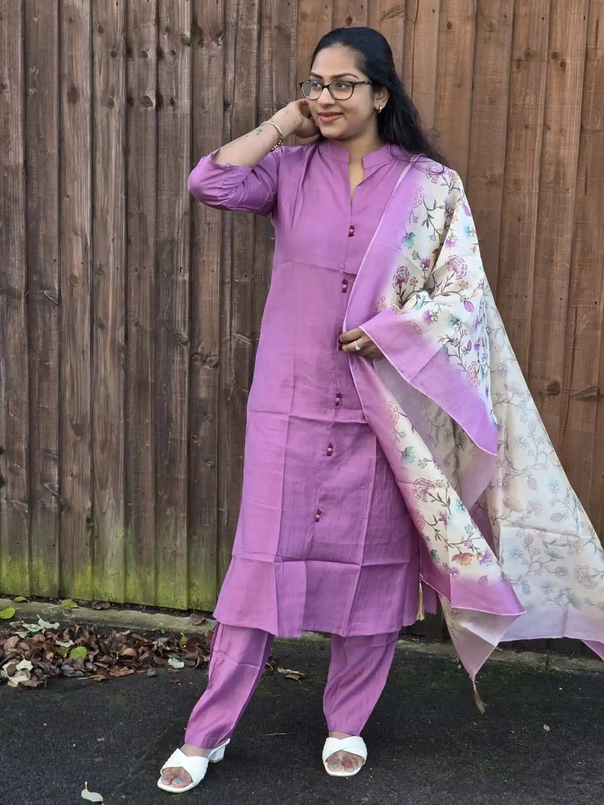 Lavender Suit Set – Simple & Elegant with Floral Semi-Tessar Dupatta